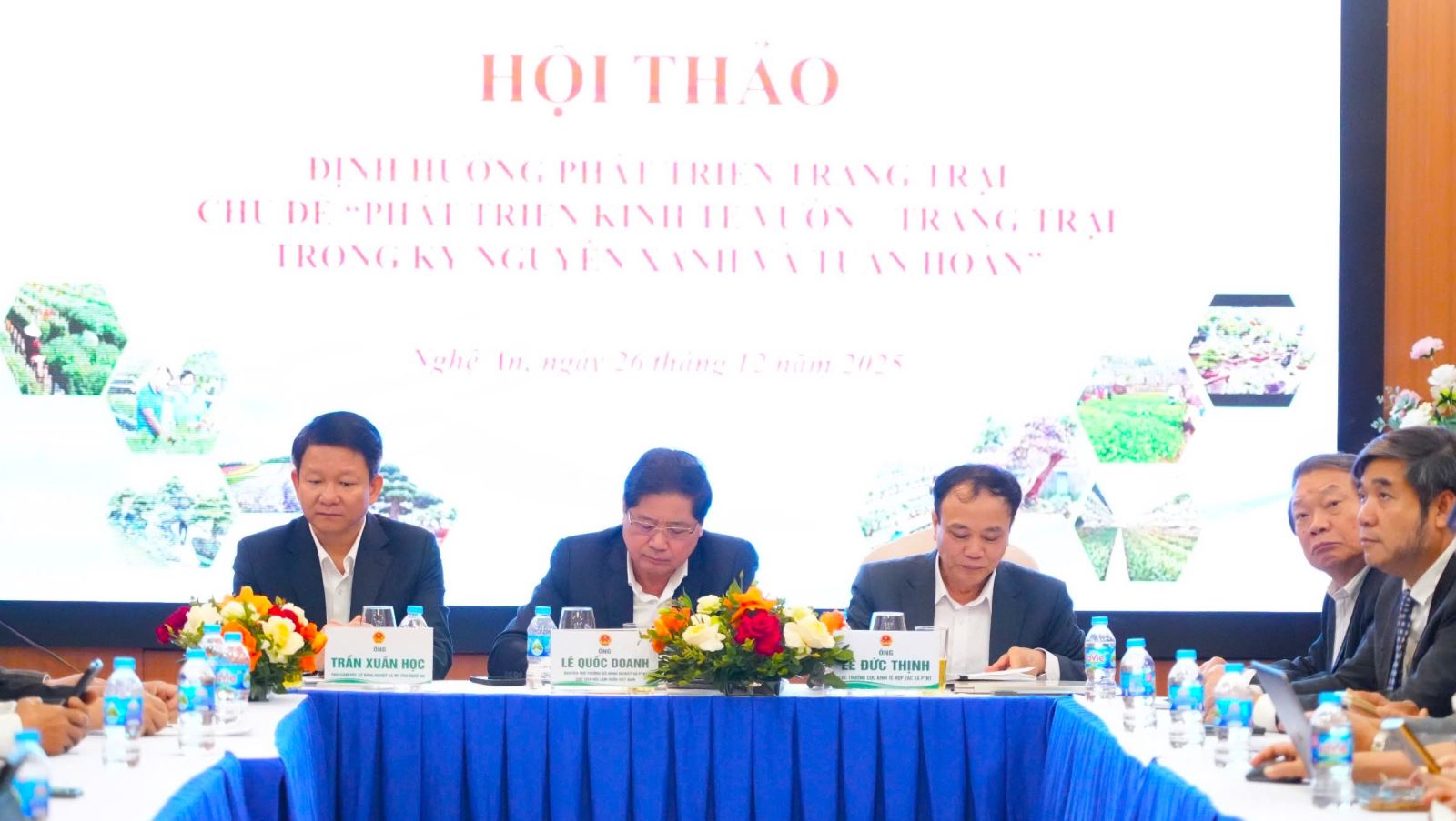 Phát triển kinh tế vườn - trang trại trong kỷ nguyên xanh và tuần hoànNgày 26/12, tại khách sạn Thượng Hải, phường Thành Vinh (Nghệ An), Cục Kinh tế hợp tác và Phát triển nông thôn và Hội Làm vườn Việt Nam tổ chức Hội thảo "Định hướng phát triển kinh tế vườn, trang trại trong kỷ nguyên xanh, tuần hoàn".