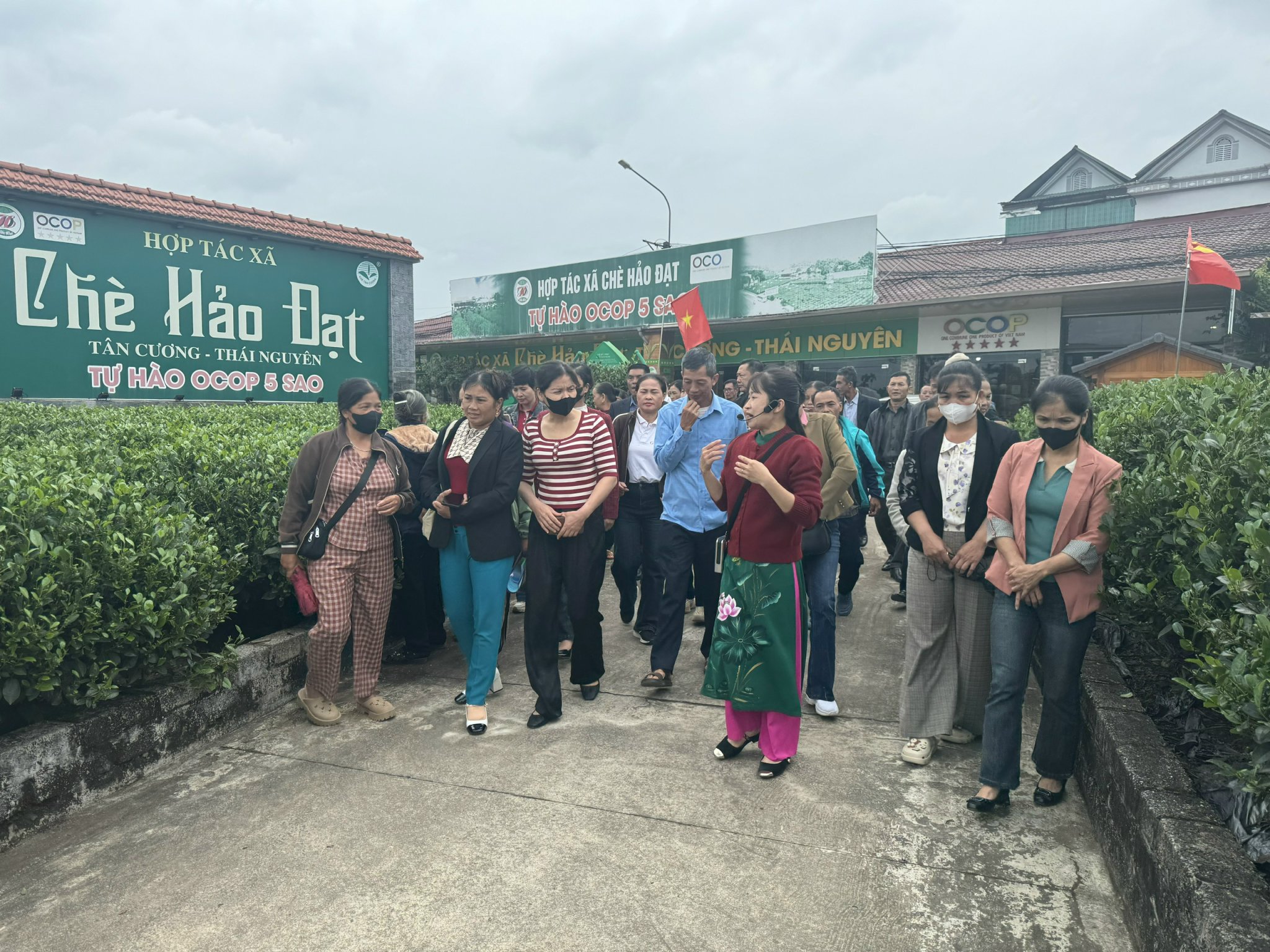 Các thành viên khoá tập huấn cũng đã tham quan trao đổi và học tập tại cơ sở sản xuất của HTX sản xuất chè Hảo Đạt tỉnh Thái Nguyên. Đây là HTX đã có sản phẩm đạt tiêu chuẩn OCOP 5 sao Quốc gia nhờ áp dụng các giải pháp tiến bộ kỹ thuật mới và biện pháp quản trị HTX nông nghiệp trong chuỗi sản xuất, thu hoạch chế biến và tiêu thụ sản phẩm của mình.
